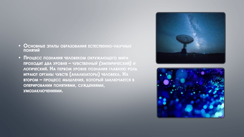 Основные этапы образования естественно-научных понятийПроцесс познания человеком окружающего мира проходит два уровня – чувственный (эмпирический) и логический. На первом