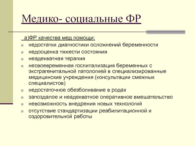 гигиенические и медико-организационные показатели)