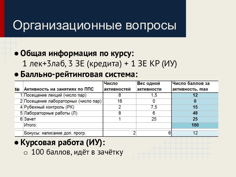 лекции (8 лекций)6 баллов за лабораторную (8 работ)