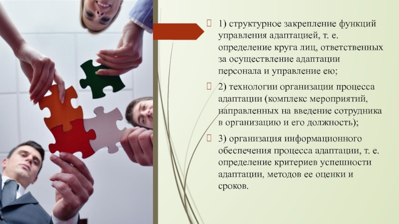 Слайд 111) структурное закрепление функций управления адаптацией, т. е. определение круга