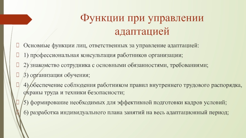 Слайд 12Функции при управлении адаптацией