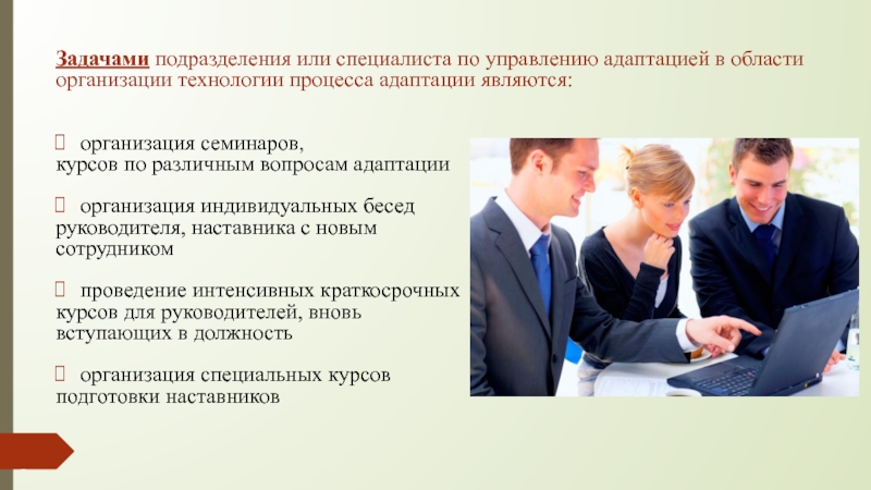 Слайд 7Задачами подразделения или специалиста по управлению адаптацией в области организации