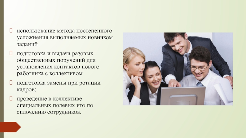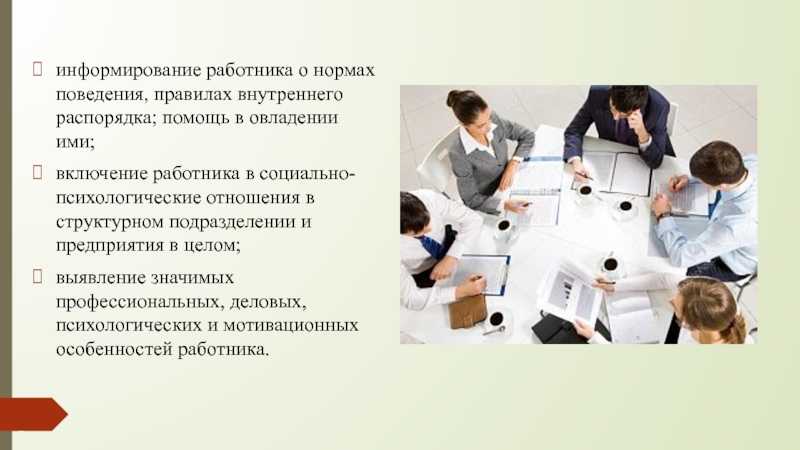 Слайд 6информирование работника о нормах поведения, правилах внутреннего распорядка; помощь в