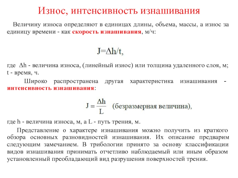 Широко распространена другая характеристика изнашивания - интенсивность изнашивания: