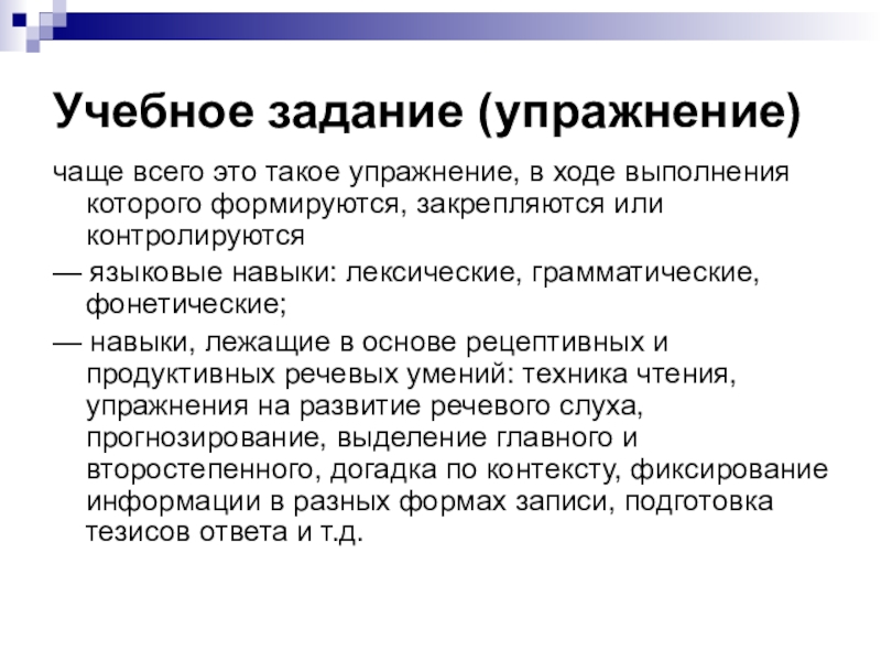 Слайд 60Упражнение является речевым, если для его выполнения учащийся воздействует на