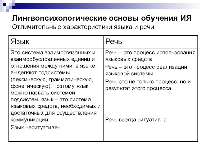 Слайд 18Заполните таблицу, в которой бы отражалась специфика предмета ИЯ и