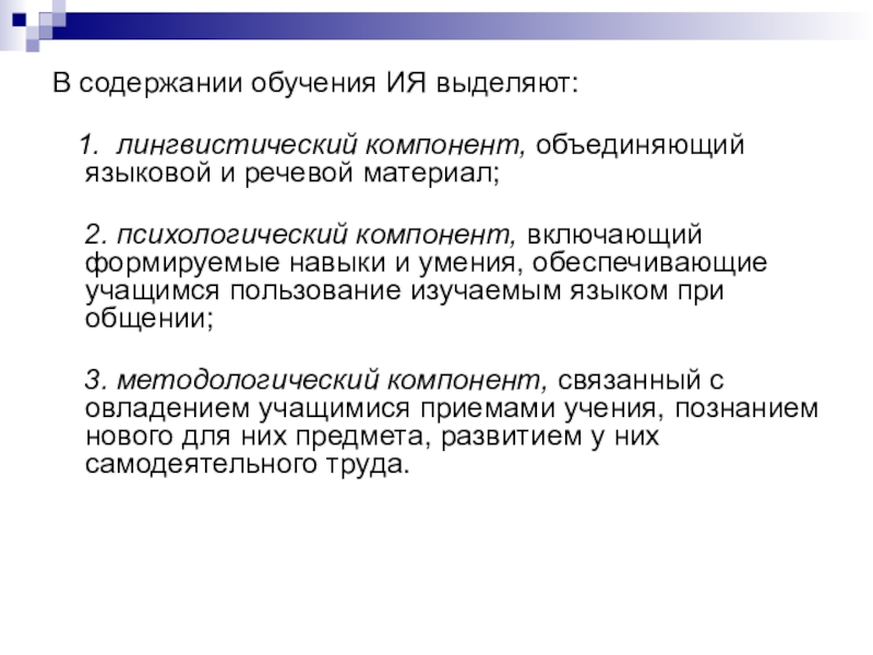 – элементы структуры процесса обучения ИЯ, которые отражают особенности