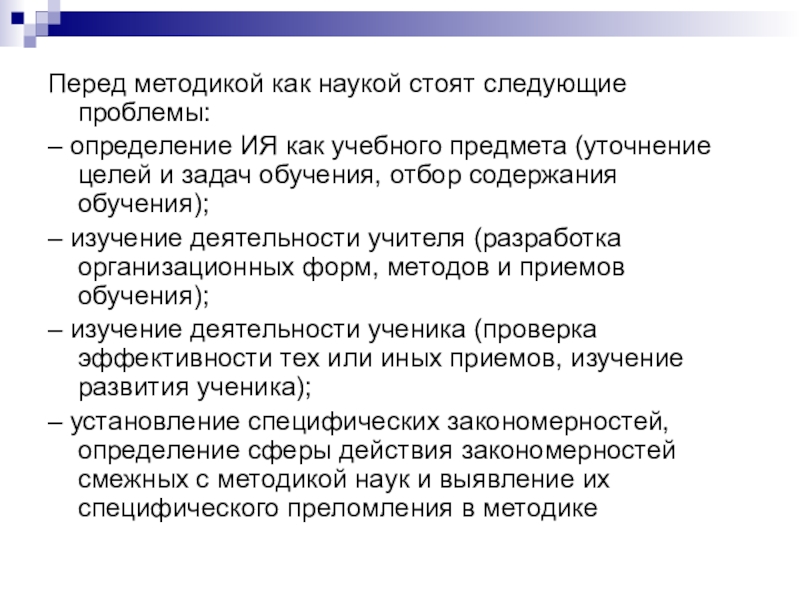 Слайд 16Перед методикой как наукой стоят следующие проблемы: