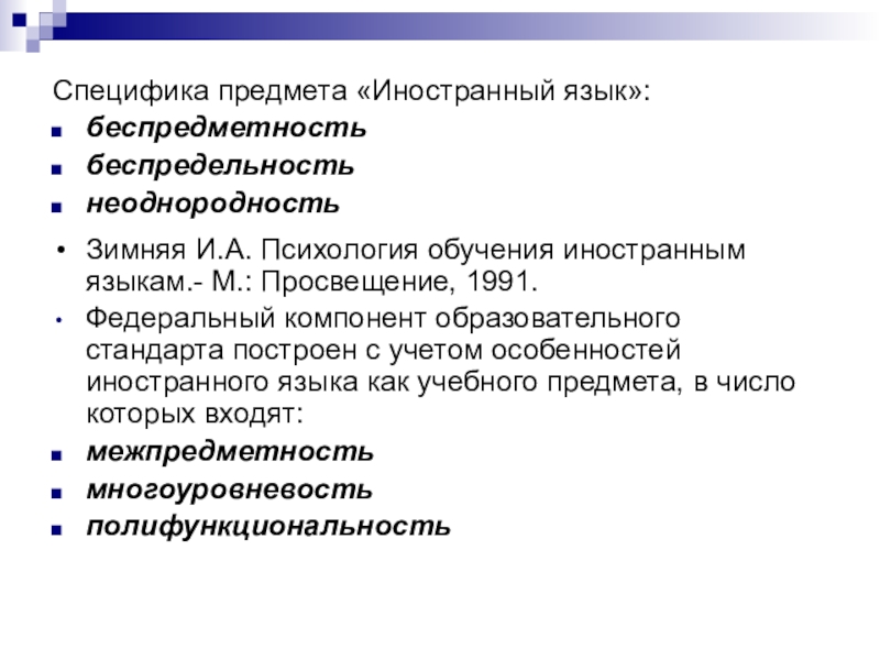Зимняя И.А. Психология обучения иностранным языкам.-