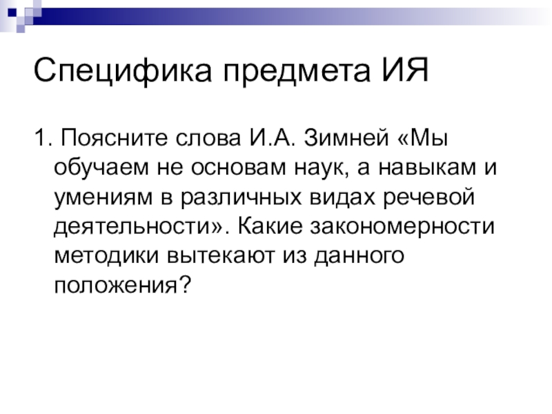 1. Поясните слова И.А. Зимней «Мы обучаем не