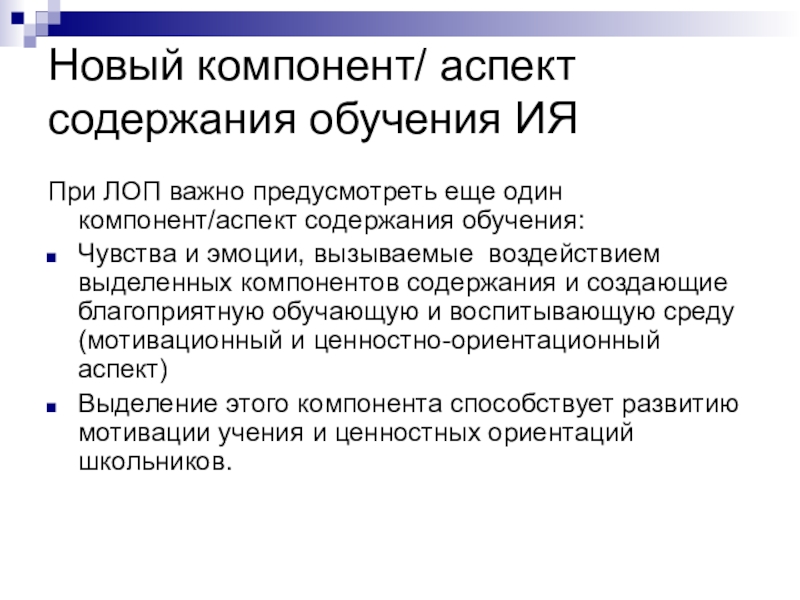 Слайд 49Новый компонент/ аспект содержания обучения ИЯ