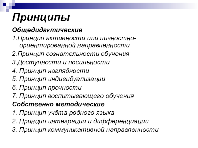 принципы второго ранга (общеметодические), лежащие в основе обучения иностранному языку вообще;