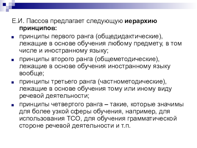 Слайд 55Е.И. Пассов предлагает следующую иерархию принципов:
