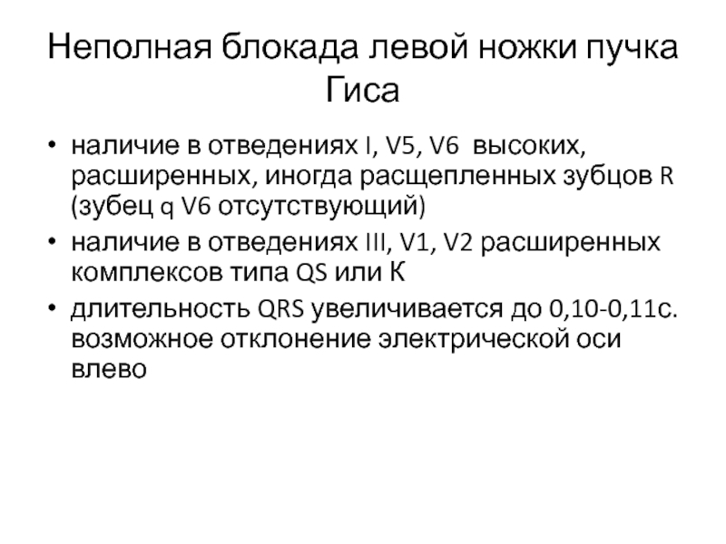Слайд 39Неполная блокада левой ножки пучка Гиса