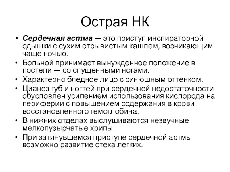 Клинически — это развитие сердечной астмы, проявлением которой является