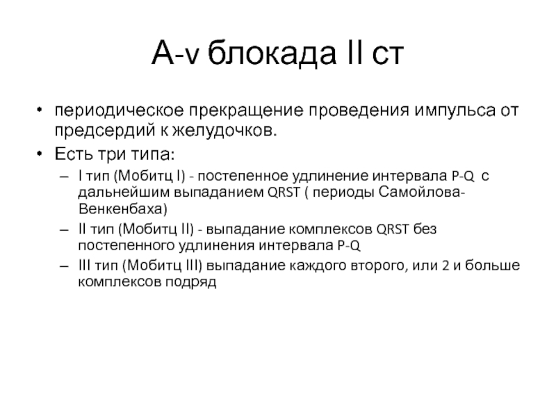ІІ тип (Мобитц ІІ) - выпадание комплексов QRST без постепенного удлинения интервала P-Q