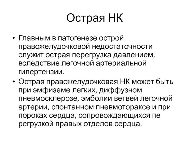 Главным в патогенезе острой правожелудочковой недостаточности служит острая перегрузка