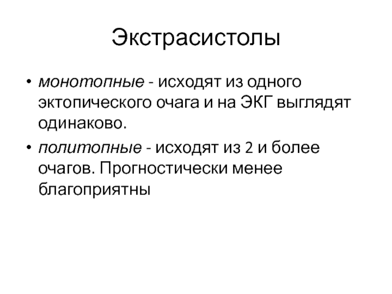 монотопные - исходят из одного эктопического очага и на ЭКГ
