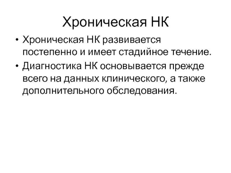 Хроническая НК развивается постепенно и имеет стадийное течение.
