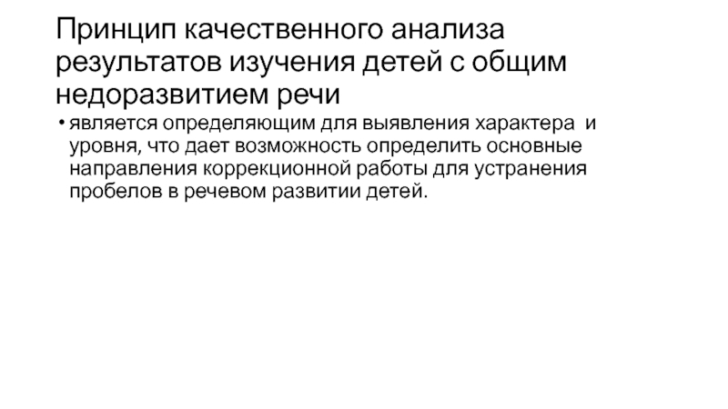Слайд 6Принцип качественного анализа результатов изучения детей с общим недоразвитием речи