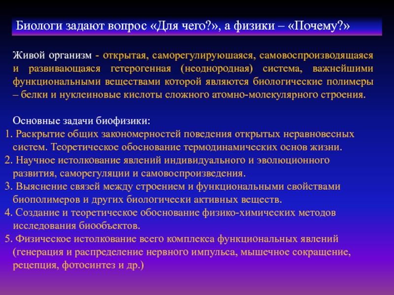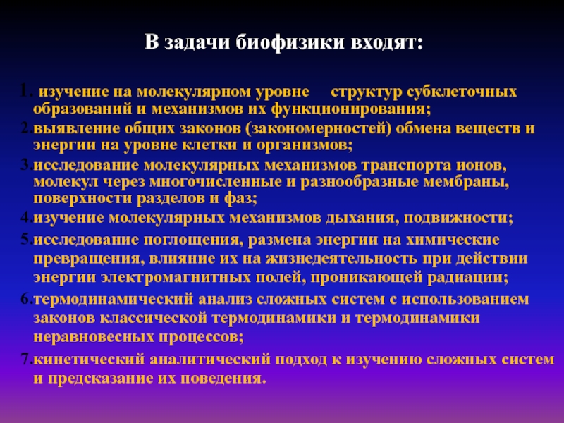 Основные задачи биофизики: