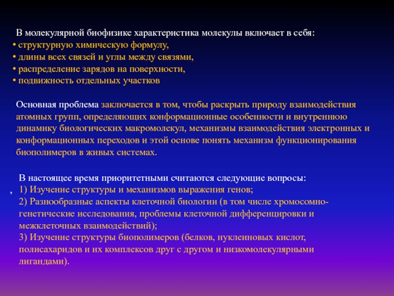 Слайд 12В молекулярной биофизике характеристика молекулы включает в себя: