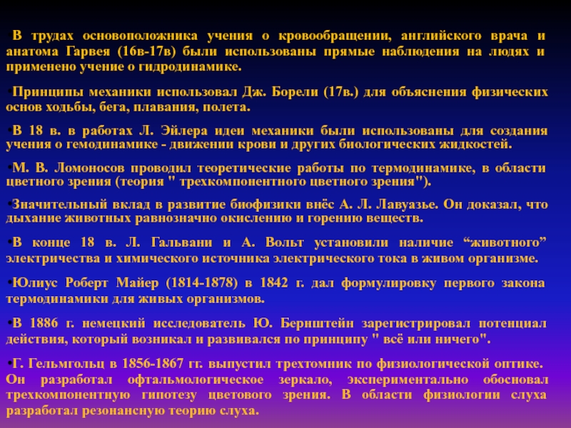 В 18 в. в работах Л. Эйлера идеи механики были использованы для создания учения о гемодинамике - движении крови и других биологических жидкостей.