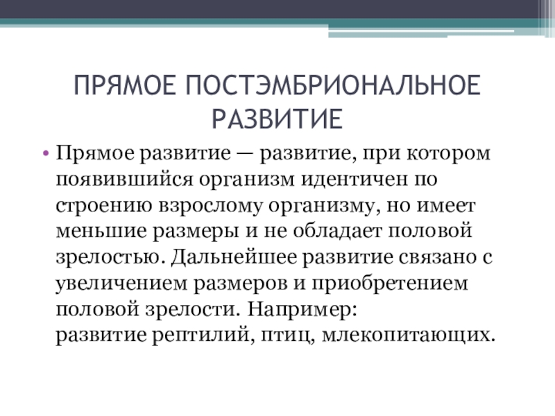 Слайд 16ПРЯМОЕ ПОСТЭМБРИОНАЛЬНОЕ РАЗВИТИЕ