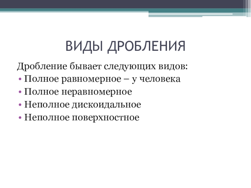 Дробление бывает следующих видов: