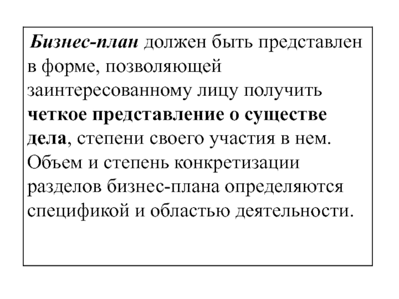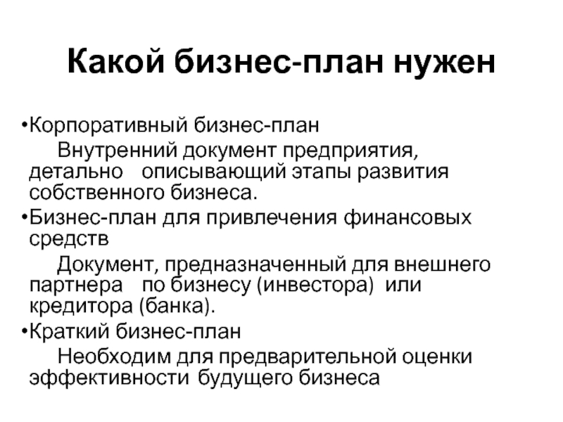 Слайд 18По объему, полноте изложения фактов бизнес-планы могут быть:
