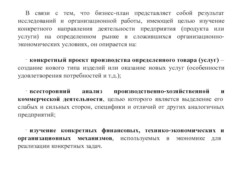 системно описывает все основные аспекты будущей коммерческой деятельности предприятия, анализирует