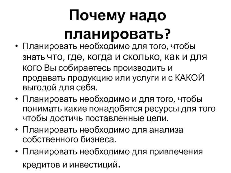 Планировать необходимо для привлечения кредитов и инвестиций.