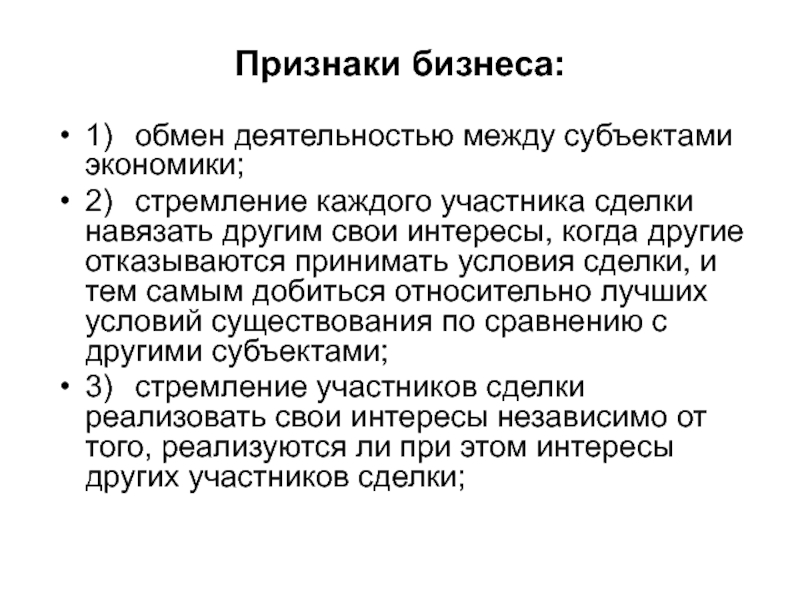 3) стремление участников сделки реализовать свои интересы независимо от того, реализуются ли при этом интересы других участников сделки;