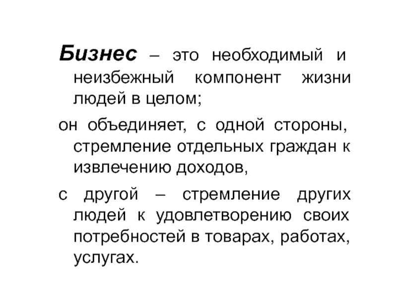Слайд 2Бизнес – это необходимый и неизбежный компонент жизни людей в