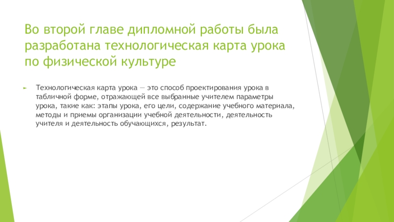 Слайд 10Во второй главе дипломной работы была разработана технологическая карта урока