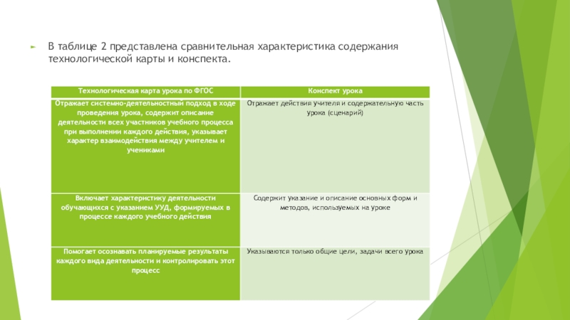 Слайд 11В таблице 2 представлена сравнительная характеристика содержания технологической карты и