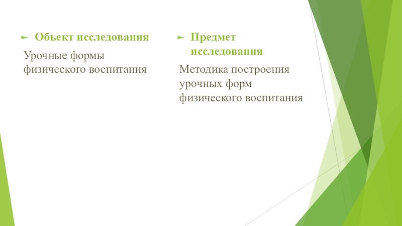 Объект исследования Урочные формы физического воспитанияПредмет исследованияМетодика построения урочных форм  физического воспитания