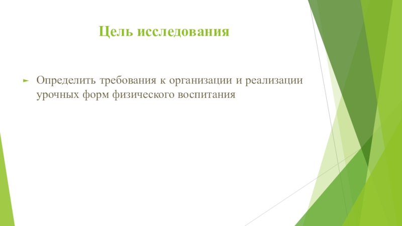 Цель исследованияОпределить требования к организации и реализации урочных форм физического воспитания