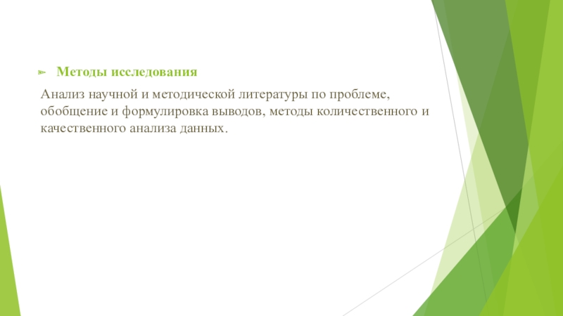 Методы исследованияАнализ научной и методической литературы по проблеме, обобщение и формулировка выводов, методы количественного и качественного анализа
