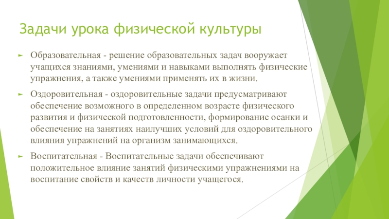 Слайд 9Задачи урока физической культуры