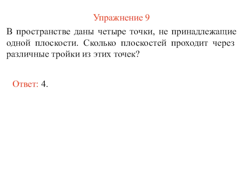 В пространстве даны четыре точки, не принадлежащие одной плоскости.