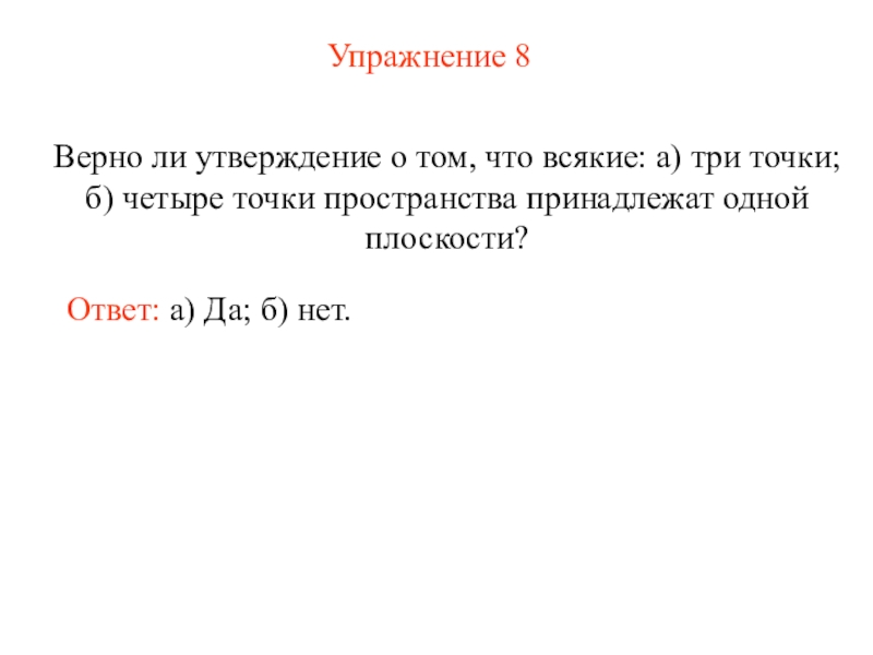 точки; б) четыре точки пространства принадлежат одной плоскости?