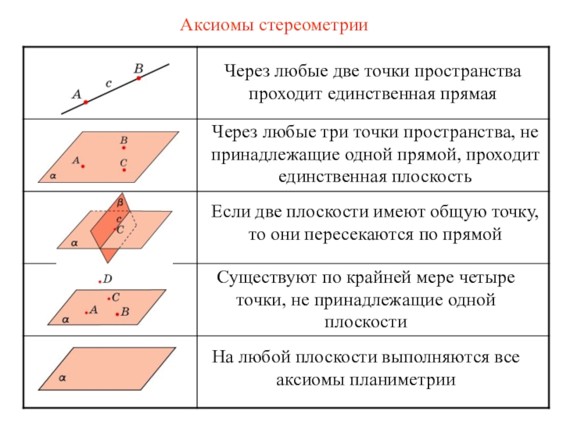 Слайд 2Аксиомы стереометрии