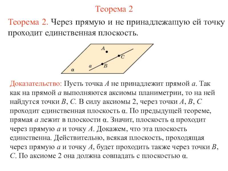 Теорема 2. Через прямую и не принадлежащую ей точку