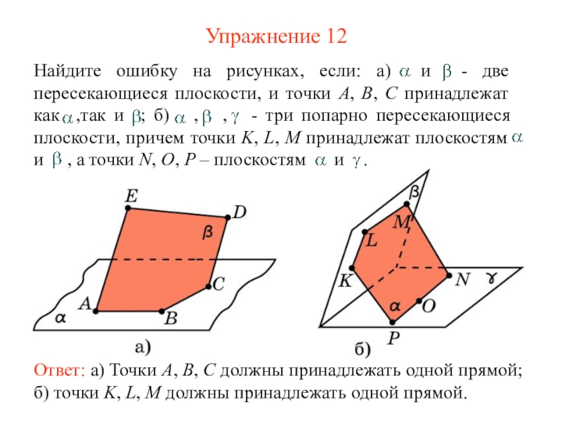 прямой; б) точки K, L, M должны принадлежать одной прямой.