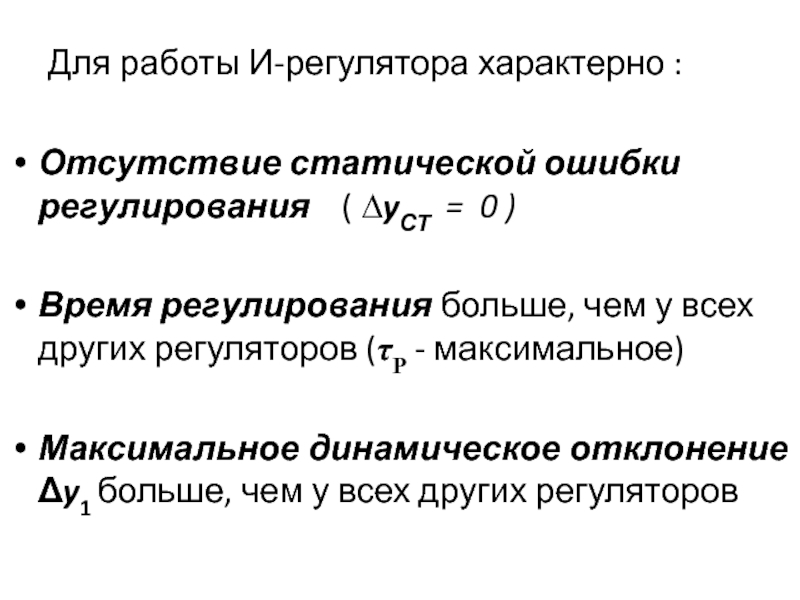 Максимальное динамическое отклонение Δy1 больше, чем у всех других регуляторов