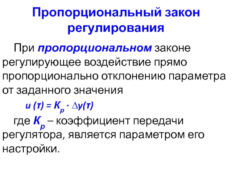 При пропорциональном законе регулирующее воздействие прямо пропорционально отклонению