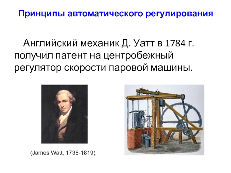 И.И. в 1765 г. создан первый промышленный регулятор – автоматический