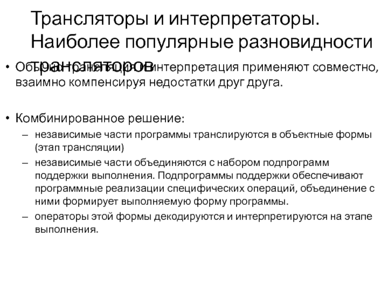Слайд 17Трансляторы и интерпретаторы. Комбинированное решение