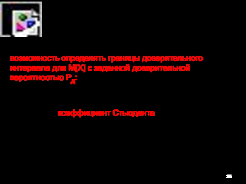 Слайд 23Практическим следствием этого открытия явилась возможность определять границы доверительного интервала
